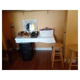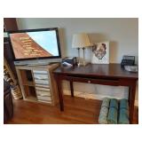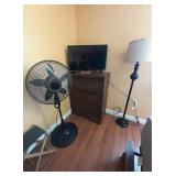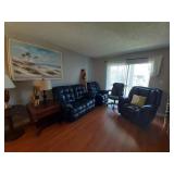 Included in this week's sale are a nice faux leather swivel rocker, recliner and love seat recliner, desk, desk chair, 2 flat screen TVs, 2 nice sofa tables, 2 end tables, dressers, an almost new queen pedestal bed with storage underneath, upholstered wing back chair, charming make-up table with chair, lamps, rugs, bathroom items, small amount of kitchen items, 2 microwaves, fans, vacuum, occasional tables and more.