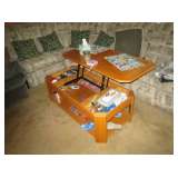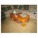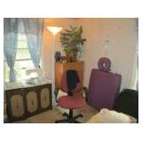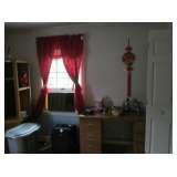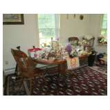 Oak Dining Room Set w/Press-Back Chairs, Unique "Rising Top" Oak Coffee Table, Queen Oak Water Bed, Shelf Units, Oak Entertainment Center, Oak Work Station, Leather Desk Chair, Asian Dining Table w/4 Cane Chairs, Dresser & Mirror, Dressing Unit, Bedside Tables, Rugs, Prints, Decorative Items, Frames, on and on.
