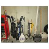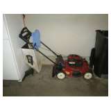 Garage & Basement Items - Toro Self-propelled Lawn Mower, Two Battery Powered Lawnmowers, Garden & Lawn Tools. Fully Stocked Husky Rolling Tool Box, Skil Table Saw, Record Power RPR Rolling Stands, Hand Tools, Ryobi Reciprocating Saw. Christmas & Holiday Decorations, Utility Shelves, Massage Table, Sewing Machine. Badminton Set, Pro Form Cross Trainer Universal Gym, Golf Clubs.