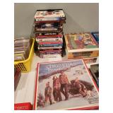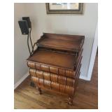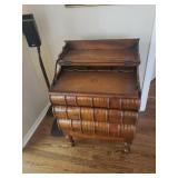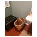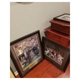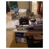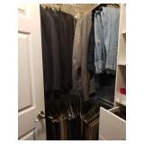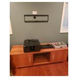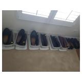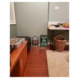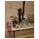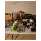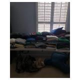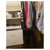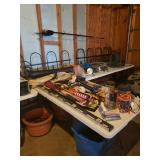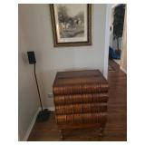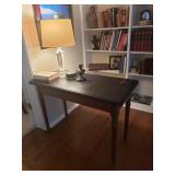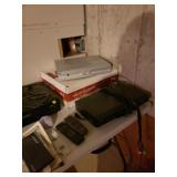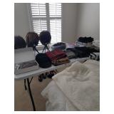 Hancock & Moore Navy leather couch Theodore Alexander stack of Book table/desk Bernhard coffee table Panasonic TV Hickory Chair Co chest of drawers Bose surround sound Small desk from AC Neilson 's office Glass & Metal round table with 4 chairs Lamps Bedroom chests Chest with granite top Chair Bedroom set Tables Kitchenware Home decor Books Mantel clock Microwave Cart Ladders Books shelf/desk Mirrors Artwork Lamps Pie crust table with claw feet Richard Honquest entry way table Harden nightstands and Amoire X large dog crate Craftsman radio Duracraft band saw Smithe Craft chair Women's clothing & shoes Men's clothing & shoes Women's wigs
