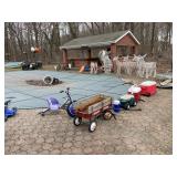Vintage toys, Tools and House wears. Holiday, vintage Halloween, vintage Christmas, clothing, kitchen items, household, home decor, girl Scout items, crafts, ride on toys, lawn equipment, hot tub, pay set with slides, Attic finds |