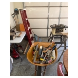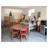 Very nice Mission/Arts & Crafts styled dining table and chairs, server, coffee and end tables, Queen bed and nightstands and more, china cabinet, Matching sofa and loveseat, Area rugs, Samsung 32” tv, Bookcases, Desk, File cabinets, Storage drawers, Two piece sectional with bolster pillows-makes two twin beds, Oak pedestal style table and chairs, Drop leaf table with chair storage, Glider rocker, TV trays, Whitewashed queen headboard and footboard and matching nightstands, Whirlpool side by side refrigerator, Whirlpool washer and non matching dryer, Magic Chef dorm fridge and microwave, Table and floor lamps, Books, Southwest decor, Wooden daybed with nice mattresses, Solid wood bedroom furniture and cabinets-ready for paint, Metal and oak bar chairs, Vacuum, Dehumidifier, Clocks, Rose china-large set, Full kitchen, Bed and bath, Quilt style blankets, Lots of glassware, Aluminum bistro set, Patio glider and chairs, Plant stands, Decorative garden cart, Wheelbarrow, Bird houses, Hand and garden tools, Yard tool stand, Table saw, Holiday decor, Lots of miscellaneous……. |