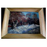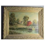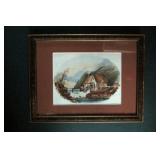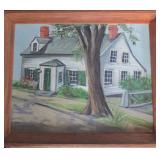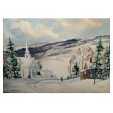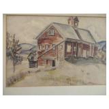 Folk Art Woolwork of a Church and Covered Bridge
