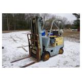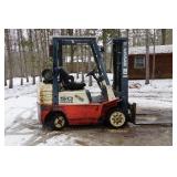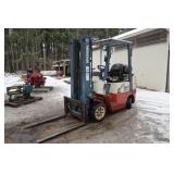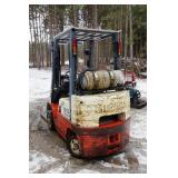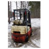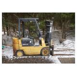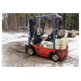 00 Information Lot We will begin the auction at 10 AM with uncatalogued smalls. Will start the online portion of the sale around noon. Uncatalogued includes- lots of fishing lures, line, bobbers etc. antique fishing lures, household items, pony cart and harness, buggy and much more. 10 Selling to onsite crowd only . 440 Male Puppy Mini Poodle, Rat Terrier, Chihuahua cross, will be 5 weeks old by auction time, ready to pick up by May 20th, no shots. 441 Female Puppy Mini Poodle, Rat Terrier, Chihuahua cross, will be 5 weeks old by auction time, ready to pick up by May 20th, no shots. 442 Female Puppy Mini Poodle, Rat Terrier, Chihuahua cross, will be 5 weeks old by auction time, ready to pick up by May 20th, no shots. 550 Bear Recurve Bow No string. 551 Ranger Darton Super Flite Recurve Bow No. 13592, 58", 45-50 pounds, no string 552 Bear Recurve Bow With string. 553 Daisy Model 131 Pellet Gun 177 caliber, break barrel 554 TF Pellet Gun 177 caliber, break barrel 555 Sears Roebuck Model 60 22 L.R. No. 273, 528132, semi automatic, Bushnell scope 556 Remington Model 522 Viper 22 L.R. No. 3111160, semi automatic 557 Winchester Model 1902-22 Short, Long, or L.R. August 29th, 1899, single shot 558 Springfield Single Shot 12 Gauge . 559 Harrington and Richardson 20 Gauge Youth Slug Hunter Serial # HR290277, 3" rifled bore, Shooters Edge 3-9x32 scope, 560 Harrington and Richardson 20 Gauge Slug Hunter Serial # HN270603, 3" rifled bore, BSA 1.5-4.5 x 32 scope 561 New England Huntsman 50 Caliber Muzzleloader Serial # NT353546, Simmons 3-9x32 scope 562 Thompson Center 45 Caliber Cherokee Muzzleloader No. 13353, Leupold Vari-x 3, 1.75 x 6 scope 563 Connecticut Valley 50 Caliber Blazer Muzzleloader No. 8567962 564 Stevens M301 Shotgun 410 Ga, Ser# 181412K, Turkey Choke, 2 1/2-3" shells, Good Condition 565 Ruger American Rifle 308 Ca., Bolt action, Ser# 696-14555, New in the Box! 566 Remington Model 700 308 Ca., Bolt Action, Ser# RR69820K, New in the box! 567 Mission Menace Compound Bow 17"-30" draw length, 35-55 lb. draw, Truglo sight, Whisker Biscuit, 4 Beman arrows and quiver 568 Bowtech VFT Compound Bow 60-70 lb., 28" draw length, includes 8 Beman arrows, release, and hard case 569 Diamond Outlaw Compound Bow W/ Carrying Case, Quiver and Arrows, Sights, Brace Height 7", Draw Length 26.5"- 30.5", Draw Weight 40lbs-70lbs, IBO Speed 330 fps, Weight 3.8, Good Condition 570 12' Aluminum Boat W/trailer, lights, 3 Seats, No Motor, Good Condition 571 12' Aluminum Boat 3 seats, including trailer with lights, no motor 572 Big Game Tree Stand 18', two seater, good condition 573 Camo Hunting Blind Octagon shape, 5-windows, Good Condition 574 Camo Hunting Blind Octagon Shape, 5-windows, Good Condition 600 2001 LT 40 Super Hydraulic Portable Wood-Mizer VIN 456C624111NJJ3949, model V1505-TE, 1.5L, Accuset 2 setworks, meter reads 5700 hours, hydraulic log lift, Kubota diesel engine, includes hydraulic unit powered by Honda gas engine, good working condition 600A Woodmizer Band Sharpener Model 016706, auto sharp control, 12 V operated, good condition 600B Suffolk Tooth Setter Model DTS-03, serial # 10856, good condition 600C Bandsaw Bands 13' 2" long x 1 1/4", approximately 40 pieces 600D Brewco Upcut Saw* Speed Cut, 9' Infeed, 5' Outfeed, W/Foot Pedal, Working Condition 601 JLG 6036 Skytrak Ser# 0160019821, meter reads 9121 hrs, 6,000 lb Lift, Open Cab, Max Lift Height 36', Max Reach 22'.4", Cummins engine, Good Condition 602 Allis Chalmers 840 Loader Runs and operates, center pins are good, Perkins diesel, includes forks and bucket 603 Ford 335 Tractor with Front End Loader Meter reads 1181 hours, 3 point hitch, includes 70" bucket 603A 46" Forks For Ford Tractor . 604 CAT 60 Forklift Model GP-30, serial # 7AM04894, 3 stage, LP gas, short mast, side shift, 5800 lb. lift, meter reads 10,454 hours, good front tires 605 Nissan Forklift Model CPJ02A25PV, optimum 50, LP gas, 3 stage, side shift, tilt, light, short mast, meter reads 28,425 hours, 4400 lb. lift, 42" forks 606 Cat Forklift Model GC-20, Ser# 4EM-00209, 4000LB Lift, Lp Gas, meter reads 3135 hrs, 3-Stage Mast , Side Shift, Short Mast, Led Lights, Tank Not Included, Will be running at Auction Time 607 Clark ForkLift Ser# C3DB760-463, Lp Gas, meter reads 2820 Hrs, 3-stage Mast, Side Shift, 3000 lb Lift, Will be running at Auction Time. 608 Clark ForkLift Model ECG25, Ser# ECG358-320-6754, 5000 LB Lift, Side Shift, 36 volt, hrs unknown, Dead Batteries. 608A 6' Fork Extensions 5 1/2" inside, good condition 608B 16' Utility Trailer 6.5' wide, lights, has title, no ramps 609 Kubota Diesel Engine V1505-E, 2466 on the meter, electric start, with fuel tank, runs good, approximately 35 Hp, 4 cylinder 610 Deutz Diesel Engine 4 cylinder, Hp unknown, less than 500 hours since rebuilt 611 Deutz Diesel Engine Serial # 7021063, 83 HP, 5 cylinder, 3537 hours since rebuilt, twin disc clutch 612 Air Compressor . 613 Diesel Engine 3 cylinder 614 Hydraulic Tank Hydraulic power unit on frame 36" x 78", hydraulic pump, line shaft 30" x 36" x 18" H, no drive 615 County Line 28 Ton Log Splitter Model 2152374, serial # 1I0613614, Honda gas engine, good condition 616 Stihl Chain Saw 026, 49 cc, 16" bar 617 Stihl Chain Saw Wood Boss 024 AV, electronic quickstop, 16" bar 618 Antique Drill Press Serial # 67, Prentice Bros, Worcester Mass, no drive, works 618A Manual Sealless Steel Strapping Tool Model A333, works for 1/2", 5/8", or 3/4" banding 619 Uline Metal Banding Cart Comes with 3/4" banding, good condition 620 Banding Tools Banding tool, crimper, good condition 621 Dock Plate 34" x 84", aluminum 622 Double Skate Rollers 52" x 96", 24" x 2 1/2" rolls 623 Metal Band Saw . 624 Galaxy Power Hacksaw Electric Drive, 14" blade 625 Skid of Bostitch Nails 2 1/2" 8D, 6,000 per box, 6 boxes 626 Skid of Nails 3 x 120, 3" x .113, 3 boxes at 6000 per box, 8 boxes at 5000 per box 627 Skid of Bostitch Nails 3 1/4 x .120", 2,700 per box, 9 boxes 628 Skid of Air Drive Nails 2 1/2 x 099 screw Blunt 