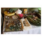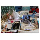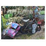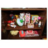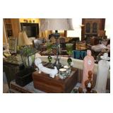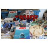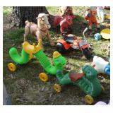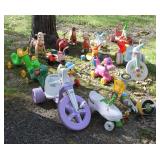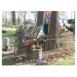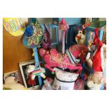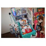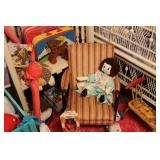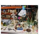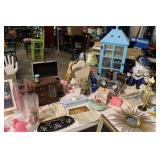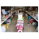 MISCELLANEOUS: Jaws Items, Beach Decor, Antique Railroad Lanterns, Flamingo & Seahorse Items, Vintage Perfume & Lotion Bottles, 50th Anniversary Rudolph Items, Like New Holiday Door Hangers & Wreaths, Antique Coke & Tom's Peanuts Collectibles, Designer & Chenille Pillows, Over 100 Collectible Barbie Dolls (still in boxes 1970's-present), Hallmark Ornaments in box, Grinch Items, Doll Clothes, Antique Shirley Temple Dolls, Vintage Luggage (some painted), quilts, lamps, Olaf/Frozen Items by the dozens, vintage playground equipment & riding toys, plants, wind chimes, art, upholstered trunks, antique tri-cycles and Bicycles, coffee table made from chicken crate, mirrors (all sizes), yard art galore (thousands of items outside), Outdoor Playhouse, Vintage Pedal Cars, Retro 50's Metal Lawn Chairs, Large Wooden wine Barrel, Antique Underwood Typewriters, etc.