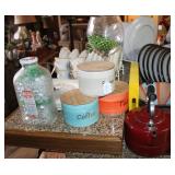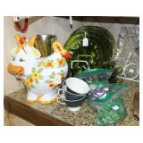 Dozens of Themed Wine Corks/ Bottle Stops, Sets of Knives, Copper Canisters, Lots of Green & Vintage Kitchen Items, etc.