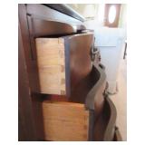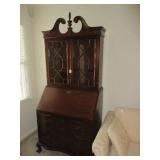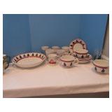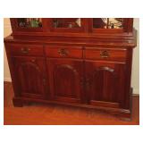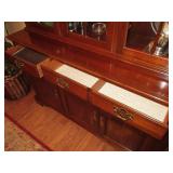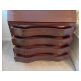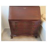 This auction includes Pennsylvania House Cherry Drop Leaf Table, 6 Pennsylvania House Ladder Back Chairs, Cottage Painted Dropleaf Table with Ladder Back Chairs, Striking Chippendale Style Serpentine Secretary, Knob Creek Ethan Allen Cherry China Cabinet, Pocket Watch, Vintage Fountain pens, Duncan Phyfe Style Sofa, Sleeper Loveseat, Formal Sofa, Christmas, Kitchenware, Blue Ridge Pottery, Grill, Yard Tools, Wheelbarrow, End Tables, Table Lamps, Hobnail Cranberry Opalescent Lamp, Dolls, Fashion Jewelry, Imperial Glass, Etc.