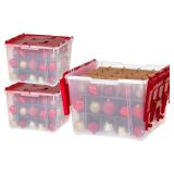 IRIS USA WL-60 Holiday Ornament Storage Box with Dividers, 3 Count, Clear/Red, 3 Count