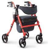 Medline Premium Empower Rollator Walker with Seat, Comfort Handles and Thick Backrest, Folding Walker for Seniors, Microban Antimicrobial Protection, 8" Wheels, Red Frame
