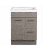 The Glacier Bay 24.50 in. W Jayli vanity in Haze with cultured marble vanity top in White is a beautiful unit that is exceptionally designed for the modern home. The Jayli vanity comes built with 1 right hand side shelf behind 2 doors for easy access to stored products. The vanity is perfectly paired with an extra thick 2 in. thick white vanity top that is sure to impress your guests and complete the look of your room. Assembled dimensions are 24.50 in. W x 16.75 in. D x 34.09 in. H Solid white 2 in. thick cultured marble integrated rectangular bowl vanity top with a cascading integrated rectangular sink Top is pre-drilled for a 4 in. center set faucet, faucet sold separately Haze finish 1 flat panel RTF door with 6-way adjustable hinges for easy door alignment Open cabinet space and 1 right hand shelf behind 2 doors for generous storage Vanity is constructed out of furniture grade wood