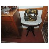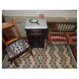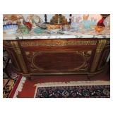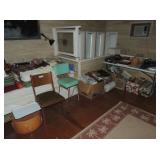 Antique French marble top ormolu buffet/sideboard, Multiple heavily carved upholstered antique side chairs, Multiple antique dinette sets, Vintage maple hutch, Mid century arm chairs, Vintage upholstered sofa, Mid century modern Danish desk, Several marble top side and accent tables, Westlake accent pcs, Antique foot stools, Antique claw and glass ball piano stool, Matching antique Austrian marble top hutch and side board, Several lighted display/ curio cabinets, Primitive furniture, Multiple upholstered antique chairs, Victorian era furniture, Heavily carved rocking chairs, Antique heavily carved settee, Victrola cabinet, Tiger oak accents pcs, Antique telephone bench, Mid century modern teak night stands, Retro vintage footstools, Round side tables, Round Italian marble accent tables, Lane cedar chest, Antique French burl wood side tables, Mid century modern stereo cabinet, Marble top vanity/desk, French provincial dresser, mirror & night stands, Mid century modern chest of drawers, Wooden file cabinets, Mahogany display shelf unit, Misc book shelves, Widdicomb maple desk, Matching upholstered rocker recliners, Victorian era parlor chairs & sofa, Tons of Misc accent pcs, Hand painted matching antique cabinets with glass door fronts, Cedar furniture,