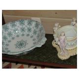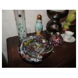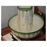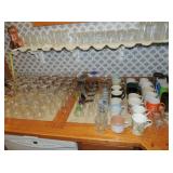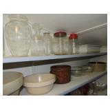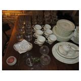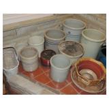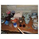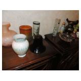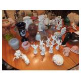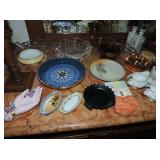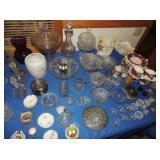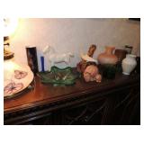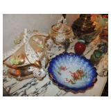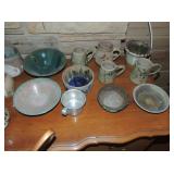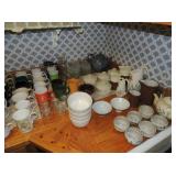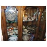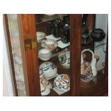 Royal Delfts, Crown ware, Vaseline glass, Several Noritake sets, Windsor Browne, Mikasa, Pyrex, Informal, Teapots, Reed & Barton Renaissance set, Hand painted porcelain plates, cups and saucers, Crystal stemware, Antique pressed and cut glass, Colored glass, Crystal pitchers and decanters, Formals, Antique wash basins and pitchers, Italian Capodimonte, Hand blown glass pcs, Art glass, Signed pottery, Murano glass, Colcough, Phoenician, Italian porcelain, Western German glass, Crown Ducal, Fenton, Hobnail glass, Early Nippon, JPF Germany, Carlo Moretti, Frankoma, Roseville, Art glass perfume bottles, Warwick, Milk glass, Cobalt blue glass, Early American pottery, Asian vases, Antique crocks,