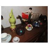 Several fine quality oriental rugs and runners, Metal wall art,a Framed mirrors and prints, Floral arrangements, Candelabras, Tons of unique antique and vintage lamps, Figurines, Wood carved sculptures, Carved wood dragon book ends, Kitchen and bath decor, Tons of unique vintage decorator items, Clocks, Record albums, Cd's, Cassettes,