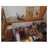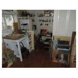 Multiple easels, Vintage Necci Italian sewing machine, More vintage and antique furniture, Tons of antique frames, Original oil paintings, Paint, Brushes, Art books, Misc art supplies, Fabric rolls, Stained glass, Sewing and craft supplies, Vintage buttons, Leather working supplies, Yarn and thread, Signed prints, Vintage toys, Electronics, Rugs, Linens, Posters, More Indian art, Sculptured heads,