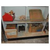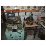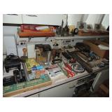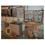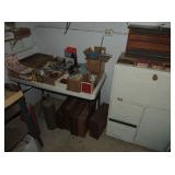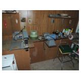 Bridgeport mill, Clausing lathe, Vintage machinist tool boxes (full), Buffalo metal cutting band saw, Lortone Lapidary Saw, Cutting torches, 2 Baldor grinder/buffers, Powercraft bench grinder, Wilton Square wheel belt grinder, Delta table saw, Foley Belsaw planer/ molder, Pottery making supplies, Metal shop cabinets and shelving, Tons of hardware bins, Folding tables and chairs, Additional vintage and antique furniture, Lumber including walnut, Ironrite ironing machine, Tons of hand tools, Power tools, Ladders, Wood carving tools, Blanks for knife making, Blank stocks for rifles, Quality shop chemicals, Pots and planters, Gardening, Cigar boxes, Tons of antique furniture restoration hardware, Old door knobs,