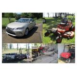 ANTIQUE TRACTORS, LEXUS, KABOTA ZTR MOWER, BOAT, & UTILITY VEHICLE