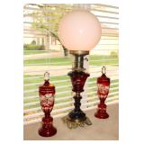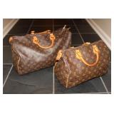 (2) Authentic Louis Vuitton bags-excellent condition; early Chinese jade incense burner-signed; much sterling tableware; pair early ruby-cut-to-clear decanters; ruby-cut-to-clear banquet lamp; Waterford crystal; early brass student desk lamp; globe w/ marble & brass base-nice; (4) cloisonne vases; pair weeping gold vases; assorted framed artwork; Tiffany-style stained glass table lamp; Lennox celadon lamp w/ brass base-nice; Lennox; golf-related collectibles; Goebel Hummel anniversary clock; cobalt glassware; Murano glass swan; Swavarski silver statue in org. box; collections of glassware & crystal; silverplate; 1950’s compacts; & much more!