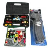 37 SLOT CARS,PARTS,TRACK,& CARRYING CASE