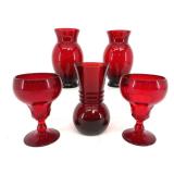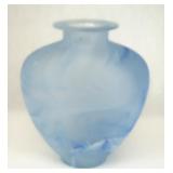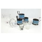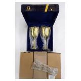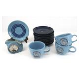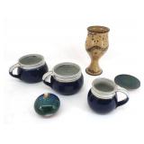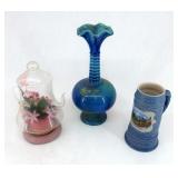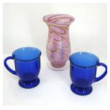 1238 2 COLBALT BLUE CUPS, ART GLASS VASE