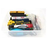 38 PLASTIC BIN OF SLOT CARS AND PARTS