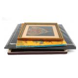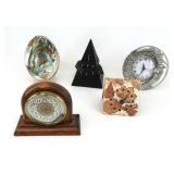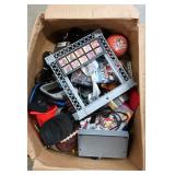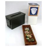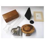 1237 WOODEN CLOCK AND BOX, WIND CHIME, PICTURE FRAME