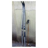 1212 PAIR OF BAMBOO SKI POLES, TUBS SNOWSHOES, SALOMON SKI BOOTS