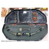 1281 CAMMO COMPOUND BOW AND ARROWS IN CASE