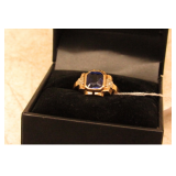 Ladies 14KT Gold Ring with Large Sapphire and Diamonds