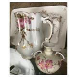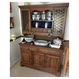 GREAT SALE / home FULL !! Antique chairs, solid wood accent and end tables, sofa / loveseat set, plant stands, lamps, framed prints, mirrors, wingback chairs, dining table / 6 chairs with matching china / display hutch, flatware set, china set, bar stools (3), drop leaf table, tray table set, vintage storage hutch, rolling prep table, Pfaltzgraf stoneware set, refrigerator, vintage recliners, antique leaded glass door, antique sewing table / machine, bookcases, washer / dryer, ladder, some tools and yard items, lawn mower, costume jewelry, dressers and beds / sets, antique dressers, twin bed set, flat screen tv's, wicker pieces, wood rockers, concrete plant stands and more to be unboxed !! |