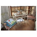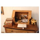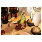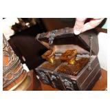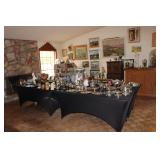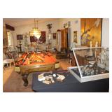 Some of the items are Pocket Watches 24k, 14K Gold Rings Sterling Rings Sterling Bracelets Navajo Jewelry Sterling Mother Pearl Multiple Bronzes Buck Knifes Camillus Knife Older Knifes Patio Furniture and decor Howard Miller Grandfather Clock Dozens of various paintings Blue Willow China, some from England - some from China Huge Custom and lit Doll House Filled to Brim Multiple Professional Pool cues and Pool Table for Sale Mid century furniture Homco Porcelain Napco porcelain and pottery Churchill porcelain A Carrier Belleuse bronze Set Patio Planters Patio Wood Iron and Stone Animals Corning wear Collectible Pyrex dishes Jewelry Cases Incolay Stone Soapstone Cowboy Hats, straw hats, Various Womens Clothes 2003 Magna Honda Motorcycle is for Sale as well (Subject to sale at anytime this one item) Dan Ostermiller bronzes Silver plate, sterling weighted, sterling reinforced pieces -100s of them Brass items Roseville pottery - from different eras Complete friendly village porcelain set from England, with cups, glasses, wine ware, plates, etc Bohemian glass, depression glass, milk glass, Fenton, opalescent glass - you name it we have it :) Metal and Cast Iron works Antique weights Couple pieces of Acoma pottery Broadway posters Wizard of Oz poster Crystal perfume bottles Onyx pieces, candle holders, trinket boxes Wedgewood Antique books - ei. Cleartype Edition Dickens works, 20 volume complete set |