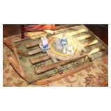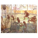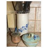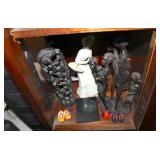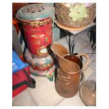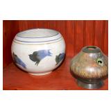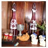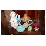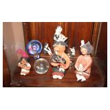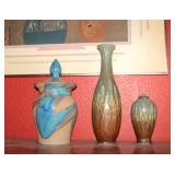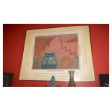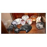 Antique & vintage books; much signed Southwestern wall art; (2) wooden well buckets; brass candlestick holders; Precious Moments figurines; lots signed art; Sid Dickens memory block; stand-up wooden butter churn-nice; horse yoke; solid copper dustpan; salt glazed stoneware; large collection signed studio pottery; several pieces Fenton limited edition glass; depression glass; Asian ware; 2-man saw; sizable collection Native American pottery storytellers; Native pottery; Native carved stone fetishes; art glass paperweights-signed; crystal-some Orrefors; much glassware & china; knick-knacks; (2) pink ruby-cut-to-clear glass barber bottles; African carved statues; large Lladro figurine group; large set wheel-cut glass stemware; sizable elephant collection; (3) brass coal scuttles; painted kerosene heater; silverplated flatware in wooden case; copper & brass, mid-century, Curtis Jere signed Kansas wall art piece; leather bound books; sterling, gold & costume jewelry-many turquoise & Southwestern pieces; (3) squash blossom necklaces; silver coins; quilts; vintage afghans; small collection Syden-Stricker glass; many global items; ornate wall mirror; early wooden sled; glass Aladdin oil lamp-early; early metal wagon; & much more!