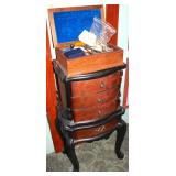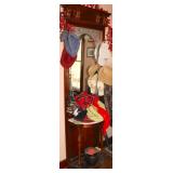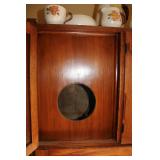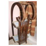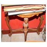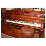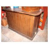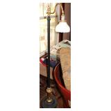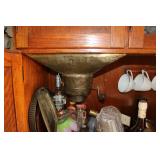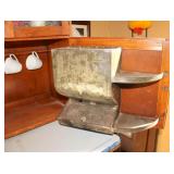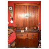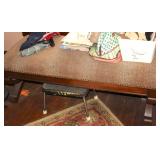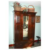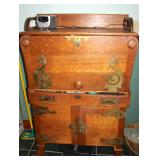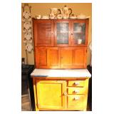 Oak knee-hole desk w/ leather top-1900’s; maple cannon-ball 4-poster bed-1940’s; early walnut corner cabinet-very nice; early sled made into coffee table w/ glass top; primitive painted 3-piece pie cabinet-unusual; early oak baker’s cabinet w/ marble top; early oak icebox; very nice Hoosier kitchen cabinet w/ porcelain top-complete; very nice, early stepback kitchen cupboard; unusual carved figural half-moon table; unusual copper Arts & Crafts period floor lamp; large primitive oak work table; very unusual oak drop-front secretary desk; nice walnut knock-down wardrobe w/ carvings; dark mahogany library step stool; 1940’s Duncan Phyfe dining room set: china cabinet, table & chairs; pair tombstone-top curio cabinets-nice; Gulbransen upright mahogany piano; several bridge floor lamps; walnut hall tree w/ marble top & mirrored-back; wrought-iron wine rack w/ stone top; newer oak trashcan cabinet; jewelry armoire cabinet; painted vanity & bench-1940’s; Lane waterfall cedar chest-1940’s; 1930’s deco burl walnut wardrobe-very nice; pair upholstered benches; modern oak chest of drawers; bookcases; filing cabinets; assorted floor rugs; odd chairs; assorted end tables; etc.