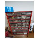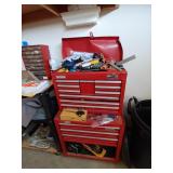 AN UPRIGHT TOOL BOX (TOP COVER IS DAMAGED SO BEING SOLD AS IS)