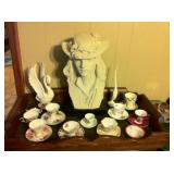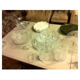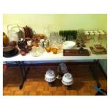Drexel Mahogany King Bedroom Suite (Bed, Dresser, Mirror, Chest of Drawers, 2 Nightstands) Permacraft Maple Bedroom Suite (Post Bed, Dresser, Chest of Drawers, Nightstand) Bennington Pine American Size Bed (Bed, Dresser w/ Hutch, Chest of Drawers, Nightstand) Oak Dining Room Set (Expanding Table, 6 Chair, China Cabinet) ~ Record Cabinet Couch & Matching Arm Chair ~ 2 Side Doe Skin Arm Chairs w/ Ottoman ~ Tea Cart 2 Steamer Trunks ~ Cedar Chest ~ Sewing Cabinet ~ Heavy Desk ~ Hand-Painted Buffet Beautiful Victorian Ornate Wood Sofa & Matching Single Chair Oil Lamps ~ Porcelain Lamps ~ Cranberry Fenton Electric Lamp ~ Floor Lamp Several Matching Lamps ~ Wallace Camelback Clock ~ Green Glass Hanging Lamp Household Kitchen Ware ~ Cast Iron ~ Crockery Pyrex ~ Corning Ware ~ Aristo-Craft Pots & Pans ~ Small Appliances Vintage Sunbeam Chrome Mixer ~ Bun Bread Warmers ~ Dripware Collectible Stamped Glassware, China & Porcelain Carnival ~ Milk Fenton (Hobnob) ~ Royal Sealy ~ Hammersley ~ Lefton ~ Nove Italian Hawkies ~ A. Santini ~ Andrea Vase ~ Royal Swirl China ~ Homer Laughlin Jim Shore Crystal ~ Heavy Cut American Glass ~ Bells ~ Blenko Orange Pitcher Set Austin Sculpture ~ Demi Teacups ~ Collectible Tea Sets Collectible Baby Dolls ~ Gone with the Wind Collector Plates Antique Pictures, Frames and Oil Paintings ~ Concrete Fountain, Statuettes & Planters 10 Piece All Weather Wicker Patio Set ~ Vintage Metal Glider Green Metal Patio Table with Chairs ~ White Patio Set Women's Clothes ~ Shoes ~ Purses ~ Hats ~ Great Vintage Coats & Furs Jewelry ~ Jewelry Boxes ~ Porcelain Dolls Linens (Sheets, Tablecloths, Sheer & Lace Curtains, Hankies, Hobnob Bedspreads) |