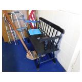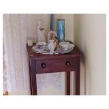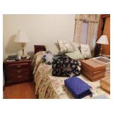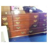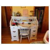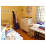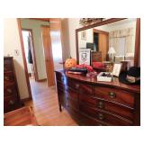 · FURNITURE -- White Bedroom Set with Single Bed, dresser with mirror, chest of drawers, and night stand, White Roll Top Desk, Cedar Chest, Mahogany Chest of Drawers, 2 matching night stands, Mahogany Dresser with Mirror, Maple Bedroom Set, Oak Roll Top Desk and Chair, Childs Bentwood Rocker, Coffee Table, End Tables, Beds, Stands, Pair of Reclining Ethan Allen Wing Back Chairs, Harden Cherry Bedroom Set with 4 poster Queen Bed, Double Dresser with Mirror and Highboy Dresser, 1960’s Dining Room Set with Table, 6 Chairs, and Breakfront, One Drawer Stand, Oak Kitchen Table with 4 Chairs, Futon, Desk, Corner What Not, more.