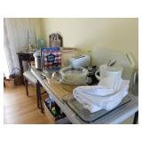 · HOUSEHOLD – Kitchenware, Linens, Meat Slicer, Brand New Crock Pot, Coffeemaker, Microwave, Men’s and Women’s Clothing, Conair Water Jet Bath Spa, Frames, Lamps, Bedding, Bookcases, Area Rugs, Mix Master Mixer, Purses, Frames, Holiday, Garden.