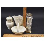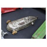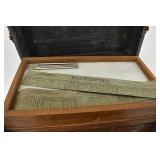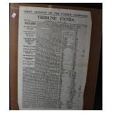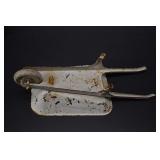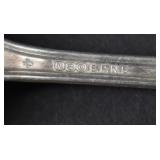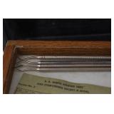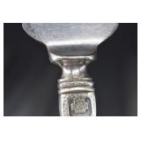 1 Birks Sterling Silver Forks and Spoons - Approx. Weight 33.81 Troy Oz. 2 Sterling Silver Spoons and Forks - Approx. Weight 12.3 Troy Oz. 3 Birks Sterling Silver Spoons - Approx. Weight 10.66 Troy Oz. 4 Sterling Silver Forks - Approx. Weight 5.37 Troy Oz. 5 Assorted Sterling Silver Spoons - Approx. Weight 9.11 Troy Oz. 6 Sterling Silver Spoons and Tongs - Approx. Weight 2.36 Troy Oz. 7 18 Sterling Silver Hollow Handled Knives 8 2 Sterling Silver Child Size Cuff Bracelets - Approx. Weight 5.18 Troy Oz. 9 2 Silver Tongs / Grabbers 10 1847 Rogers Bros. Remembrance Flatware 11 NS Co. EPNS Flatware In Case 12 Floral Decorated China 13 Assorted Cups w/ Saucers 14 4 Hobnail Cranberry Opalescent Dishes 15 Pair Cranberry to Clear Vases 16 Pink Glass Planters Peanuts Jar 17 Pink Depression Glass Pitcher w/ Glasses Set 18 Jadeite Vase 19 Hall Jewel Tea Sugar and Shaker Sets 20 Hall Jewel Tea Glasses and Juice Pitcher / Container 21 2 Boch Delft Chargers and a AS IS Oriental Blue & White Charger 22 PRR Red Glass Lantern Globe and Other 23 Texas Toothpick Style Knife w/ Sheath 24 Miniature German Clock 25 Painted Metal Police Helmet w/ Leather Liner 26 Lenk's No.30 Champion Automatic Blow Torch w/ Original Box 27 Pair Vintage Outdoor Porcelain Lights 28 Stanley No.82 Bevel Edge Scraper w/ Box 29 Victorian Pull Down Chandelier w/ Iridescent Shade, Ornate Cast Base w/ Gem Stones 30 Tribune Extra Page from July 6 1876 Account of the Custer Massacre 31 Cloisonné Vase w/ Cast Handles 32 Frederic Remington Cast Bronze Bust of Cowboy 32/100 33 Cast Bronze Buffalo Statue by C. Kauba 34 Cast Bronze Bird Statue - The Metropolitan Museum of Art 35 Carved Wood Tribal Mask 36 Middle Eastern Dovetailed Copper Kettle 37 Bronze Clad Golfer Statue 38 Solid Brass Armadillo 39 Carved Wood Tribal Hunter Statue 40 Framed LeRoy Neiman Golf Print 1983 US Open Oakmont Country Club 41 Framed Ringling Bros and Barnum & Bailey Combined Shows Circus Poster 42 The Peacemaker Print on Fabric 43 Propel Starwars T-65 X-Wing Drone - Appears to be New in Box 44 Propel Starwars 74-Z Speeder Bike Drone - Appears to be New in Box 45 Antique Hand Crank Coffee Grinder 46 Nishijin Pachinko Machine Made in Japan 47 Goebel Hummel Nativity Set 48 Framed James C. Christensen Print "Court of the Faeries" 49 Framed Christy Style Print 50 Cut Glass Applied Handle Bowl 51 Gold Rimmed Plates and Stemware 52 Amber Cut To Clear Bohemian Glass Vessel w/ Deer Scene (small rim chip) 53 Small Mahogany Case Key Wind Clock - Duverdrey & Bloquel 54 Blue & White Floral Decorated Wash Bowl and Pitcher 55 Bradley & Hubbard Ornate Cast Brass Wall Sconces w/ Mirrors 56 2 Pair Brass Candle Sticks - 1 Carolina 57 Bohemian White Cut to Clear Prismed Mantle Lusters 58 Hand Painted Floral Lamp 59 German Wood Cuckoo Clock 60 Framed Art - Winter Farm Scene and Portrait Signed Bank 61 Battery Operated Drink Pouring Bear 62 Presto C B Mini Fire Extinguisher 63 Hudson Device ???? 64 Stanley No.148 Part 65 Oak Small Corner Cabinet 66 Primitive Child Size Chest In Paint 67 Painted Tin Bread Box 68 2 Glass Apothecary Jars 69 Cast Iron Sailing Ship Door Stop In Paint 70 Kleistone Rubber Sailing Ship Door Stop 71 Armoa Bronze Indian Bookends (clad) 72 Whiskey Tantalus 73 2 Child's Victorian Cane Seated Rocking Chairs 74 Tank 75 Children's Items - Little Country Doctor Set, Alarm Clock, Clown Marinette, Etc. 76 Mohair Bear 77 Royal Doulton Figurine Christmas Morn 78 Coin Operated Gumball Machine 79 Coin Operated Gumball Machine 80 3 Popeye Composition Figures 81 Wyandotte Painted Metal Truck 82 Wyandotte Painted Metal Friction Car 83 Painted Metal Airplane 84 Painted Cast Metal Car 85 Art Nuveau Cast Metal Lamp (shade does not fit right) 86 Ceiling Mount Hanging Light w/ Reverse Painted Glass Shade 87 Prismed Lamp 88 Art Aseptible Furniture Company Medical Cabinet 89 Primitive Bench 90 Humpback Trunk 91 Playmate Deluxe Child's Wood Wagon 92 Small Humpback Trunk 93 Ornate Brass Wall Mirror w/ Attached Oil Lamps 94 Ornate Oak Frame w/ Print of Child in Military Outfit 95 Wrought Iron Sign Holder 96 Finland Sheath Knife 97 Vintage Corona Collapsible Typewriter 98 Remington Portable Typewriter In Case 99 Skeleton Keys 100 Tramp Art Casket Box 101 W J Campbell High Grade Groceries Advertising Crock - As Is 102 Marquetry Inlaid Box 103 Framed Yardlong of Young Girls Entitled "Butterfly Time" by Humphrey 1903 104 J. Chein Tin Litho Monkey Bank 105 LOT 106 2 Cast Iron Painted Cottage Door Stops 107 2 Cast Iron Sailing Ship Door Stops 108 2 Cast Iron Painted Cottage Door Stops 109 Framed Print Fiddler Artist Signed In Pencil Goldberg Artist Proof 110 Longaberger Picnic Basket 111 Longaberger Basket w/ Lid - Christmas Theme 112 Lenox China Jewels Twas The Night Collection Fireplace w/ Box 113 4 Pieces Lenox China 114 Assorted Lenox - Vase, Basket , Shakers 115 4 Pieces Assorted Lenox 116 Stueben Glass Bowl 117 Controlled Bubble Glass w/ Applied Spun Threading 118 Cast Metal Cherub Statue 119 Antique Broad Axe 120 Antique Plumb Broad Axe 121 Antique Cast Iron pick 122 3 Old Pipe Wrenches - PS&W 123 Assorted Pipe Wrenches Including Tobrin 124 Assorted Wrenches and Snips 125 Framed Cottage Scene Pastel 126 Hall Jewel Tea Nesting Mixing Bowl Set and Platter 127 Flo Blue Church Scene Plate - Made In England Expressly for Joseph Horne Co Pittsburg 128 Oil On Canvas Buck Winter Scene Signed R. Roberts 1982 129 Orange Fiesta Pitcher 130 Assorted Roosters and Chickens 131 Assorted Roosters and Chickens 132 Aladdin Nu-Type Model B Oil Lamp 133 Black Glass Loving Cup w/ Dancing Maidens 134 Assorted Brown Dripware Pieces 135 Quantity Marbles 136 Metal Car and Truck 137 J Chein Key Wind Metal Boat 138 Painted Metal Wheel Barrow and As Is Wagon 139 As Found Vehicles and Gun 140 Assorted 45 RPM Records and Case 141 Sony and Pioneer Turntables - Working Condition Unknown 142 Yuengling Beer Tray 143 Miners Helmet 144 Portable Dentist's Case / Chest 145 Griswold #7 Cast Iron Skillet 146 Favorite Piqua W