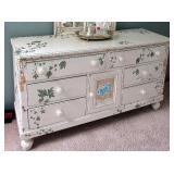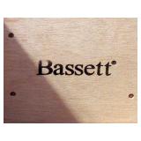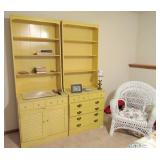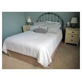BEDROOM FURNITURE: DRESSERS, BEDS, NIGHT STANDS BY MAJOR MANUFACTURERS! 2)ETHAN ALLEN HEIRLOOM COLLECTION TALL BOOKCASE CABINETS IN DAFFODIL YELLOW, MAPLE WOOD CONSTRUCTION. LEXINGTON TRIPLE DRESSER AND MIRROR, HANDPAINTED IVY DESIGN ON WHITE BASSETT FURNITURE QUEEN BEDROOM SET: COMPLETE QUEEN BED WITH SEALY MATTRESS SET, TRIPLE DRESSER AND MIRROR, NIGHTSTAND. 2) CONANT BALL FURNITURE TALL BOOKCASE UNITS IN BLUE NORTHERN FURNITURE PINE TABLE, SHEBOYGAN, WI. ADDITIONAL QUEEN SEALY MATTRESS SET.