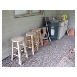 WEBER GAS GRILL, CHAR-BROIL SMOKER TRUE TEMPER RED WHEELBARREL U.S.A. WHITE GE REFRIGERATOR FREEZER LOTS OF FLOWER POTS
