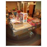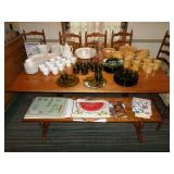 SALE HIGHLIGHTS: Henredon dining room set, including table with two leaves, six chairs, pads, round side table and buffet, custom sofas, including camelback sofa and camelback loveseat, pair of plaid wing chairs, oak four-level barrister bookcase with leaded glass, Henredon side chests, antique one-drawer stands, dry sink, Windsor chairs, mirrors, Empire grandfather clock, pair of Heritage side tables, pair of Henredon round accent tables, drum table, antique dining table with three leaves, drop-leaf trestle table with six chairs and bench, candle stands, double four-poster bed, Willet side table with gallery, cherry highboy, Queen Anne ladies slant top desk, Hitchcock bench and chair, MANY caned bottom chairs, leather occasional chair, pair of twin beds, Ethan Allen chests and corner desk unit, slant top desk, four-poster queen bed, pine highboy, Victorian wash stand with marble top, Speed Queen washer and electric dryer, vintage Amana range, Frigidaire upright freezer, Pro Form treadmill and exercise bike, cedar chest, outdoor patio furniture, lamps, including iron floor lamps, tin lamps, and electrified oil lamps, collection of antique oil lamps, collection of glassware, including Imperial, hand blown, cranberry, milk glass, vintage candy jars, vintage pharmacy jars, hurricanes, crystal stemware, collection of vintage prism glass, Lenox, Belleek, Waterford, china, including Limoges and Johnson Brothers, vintage Indiana green Kings Crown, original artwork, including watercolors by Betty Elliot and Wanda Frease, collection of Karastan wool rugs of various sizes, books, including 24-volume messages and papers of U.S. presidents, collection of baskets, including Longaberger, women’s costume jewelry and Coach purses, collection of miniature oil lamps, collection of vintage cash registers, typewriters, antique Singer sewing machine, sewing items, including books and material, rug hooking frames, wool cutter, garden items, flat screen TV’s, holiday items, including Fitz and Floyd Christmas pitchers and cookie jars, candles, MANY antique school desks, Lionel and Bachmann HO trains, artists canvas and mat boards, tools, dehumidifiers, work benches, large candy making marble slab, Cuisinart, including frozen yogurt/ice cream maker, blender and food processor, Keurig coffee maker, Texas ware Melamine dish set, service for eight Stoney Hill yellow ware, John Wayne doll, pen collection case, collection of golden replicas of U.S. classic stamps and SO MANY MORE treasures you will need all four days to see!!!