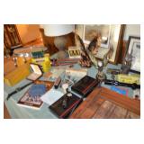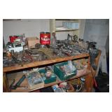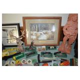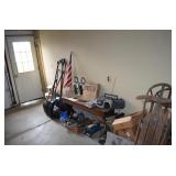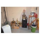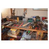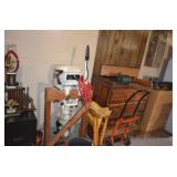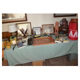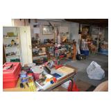 This sale contains a tow trailer log splitter, loads of tools, hunting related items, empty shot gun shell boxes, empty shot bags, reloaders (one new in box), case knifes, nature prints, books, 1960's snare drum, xmas & Halloween decorations, old kids sleds, cabinets, storage shelves, sofas, bedroom set, chairs, desk, Lionel train set, chainsaws, cast iron pans, Johnson 9.9hp boat motor and men's & women's clothes. Not everything was photographed |