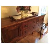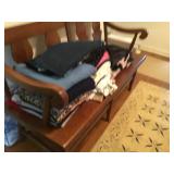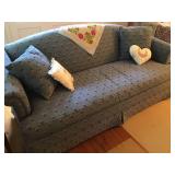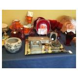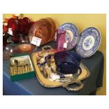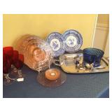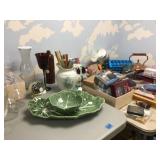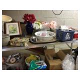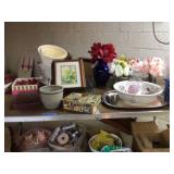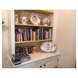 Pretty china including Spode, Lenox, Syracuse, English bone china and more. Depression and other colored glass and clear glassware. Oak trestle dining room table. Fan back Windsor chairs by D.R. DIMES. Hand made sideboard. Carved side chairs. Prints, cross-stitch and other artwork. Various decorative tables. Sofas and wi g-back chairs. Vintage and other linens. Large, wall-hanging plate rack. Hand made rug. Draperies. Mirrors and lighting. Beds (double and single) and bedroom chests. Mens and women’s clothing. Books. Costume jewelry. Pair of porch rockers. Outdoor patio furniture. Basement and garage miscellaneous. Many household items. A beautiful home with beautiful contents!