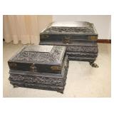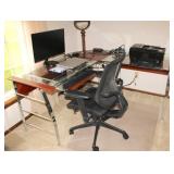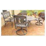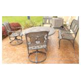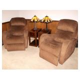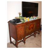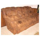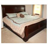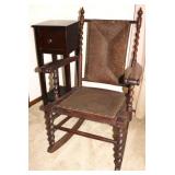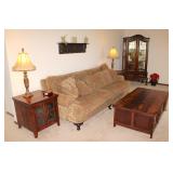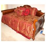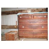 ANTIQUE: Burl walnut china cabinet-rough; large brass bed; 1930’s iron bed; burl walnut dresser-rough; unusual Victorian oak cane-bottom rocking chair-early; odd chairs; several flat-top trunks; German mahogany wall mirror; burl walnut hall table-rough; very nice German mahogany hall table w/ ornate carving; quarter-sawn oak banker’s desk chair-nice; ornate cast metal bistro table & (2) chairs; unusual barley twist dark walnut rocking chair; cherry barley twist rocking chair; early mission desk; Singer treadle sewing machine; wainscot stepback cupboard top cabinet; 1930’s mixed-wood ornate buffet; radio table-1930’s; painted washstand; etc. MODERN: Twin bed frames; very nice cast aluminum low round patio table, (3) swivels chairs & matching bench; Hampton Bay wicker rocker settee; very nice suede sofa & matching armchair w/ ottoman; leather armchair; heavily carved rosewood china cabinet-very nice; carved rosewood rocking chair; cherry coffee & (2) end table set w/ glass doors-very nice; very nice cherry/mahogany sleigh daybed; L-shaped glass top/chrome computer desk; Broyhill Premier dark mahogany sleigh bedroom suite set-tall chest of drawers, dresser w/ mirror, sleigh bed, & nightstand; pair oak barstools; pair Ashley inlaid cherry end tables; La-Z-Boy suede reclining sofa; pair suede recliners-very nice; very nice suede/leather L-shaped sectional; slate-top end & coffee table set; assorted end tables; nice assorted table & floor lamps; cowhide rug; assorted rugs; several beds; etc.