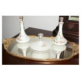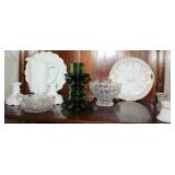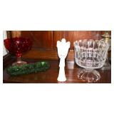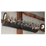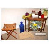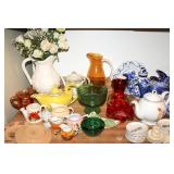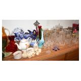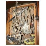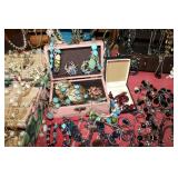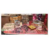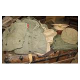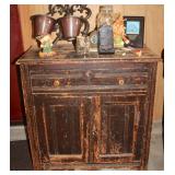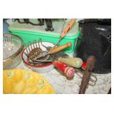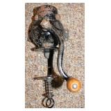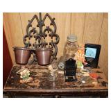 Mexican painted concrete man in sombrero w/ matching donkey-1940’s; galvanized watering can; Vito brass saxophone in case-1950’s; wooden advertising crates; primitives; NOS Coleman propane camp stove-1950’s; WW2 era military uniforms; Tiffany-style stained glass table & floor lamps-nice; ornate cast-iron candle holders; silverplate; small cast-iron well pump; milk glass; cut glass; china; crystal; small collection glass oil lamps-some Aladdin; assorted sterling flatware & souvenir spoons; “Disney on Parade” tamborine; early books; pair ornate small trunks; hand-painted glass dresser set w/ gilt mirrored tray; Polish pottery wall-mount coffee grinder-nice; Arcade cast-iron wall-mount coffee grinder; large graniteware teapot; enamelware pieces; vintage kitchen goods; Pyrex; large Lodge cast-iron skillet; several sets of Mission-style stained glass table lamps; Willow Tree figurines; mounted bass; early mirrors & framed wall art; framed Victorian portrait; nice oak wall clock; several pieces Fenton glass; Hummel figurines; small stained glass window; German crystal; 1940’s-1950’s knick-knacks; kraut cutter; large amount jewelry-some gold, sterling, vintage costume, designer, etc.; small Blue Dresden tea set; large lot hand-painted cups & saucers; advertising gas/oil road maps; milk can; Hallmark Keepsake ornaments; Jim Shore figurines; & much more!