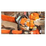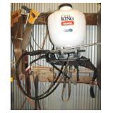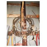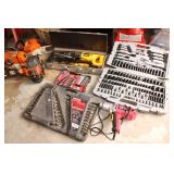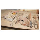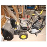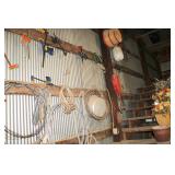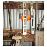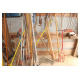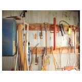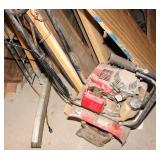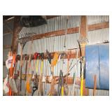 Lot T-posts; assorted wire fencing; hog panels; large fuel tank; MTD “Yard Machines” 8HP 24” gas snow blower-nice; shop vac; Cub Cadet “RT65” rear-tine gas tiller-large; gas Honda tiller; FIMCO chemical sprayer on small trailer; assorted folding ladders-some aluminum & wooden; wheelbarrow; John Deere pull-behind spreader; pull-behind aerators, spreaders & seeders; seeder; Porter Cable pancake air compressor; air compressor; Ryobi table saw; Ryobi 8” bench grinder; large farm jack; early bench vise; large amount hand tools; bolt cutters; pipe clamps; sprayers; levels; crow bars; hand saws; huge amount garden & yard tools; chains; post hole diggers; shovels; rakes; hoes; tree saws; Black & Decker “Hedge Hog” hedge trimmer; Field King Max backpack sprayer; large lot power tools; NIB Milwaukee heat gun; Dremel Multi-Max in case; Ryobi palm sander in case; Porter Cable worm-drive circular saw in case; large socket set; Craftsman 32pc. combination wrench set in case; DeWalt sawzall in case; DeWalt battery tool set; Stihl “026” chainsaw; Stihl electric chainsaw; large Echo gas trimmer; large Husky worklight; large amount drill bits; antique jacks; assorted traps; dollies; hardware bolt bins; much hardware; assorted hoses; & much more!
