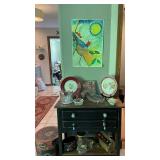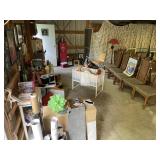 GREAT SALE – Primitives, Art, Antiques, Collectibles, Household & Yard Décor John Deere GATOR & WOODS Zero-Turn Riding Mower FURNITURE: Antique, Vintage Primitive, Mid-Century & Current including Queen Bed & Mattress, Dressers, Desk, Tables of all kinds, Coffee Tables, Chairs and Bar Stools, Couch & Love Seat, Buffet, Red & White Porcelain Table, Antique Table & 4 Chairs, Cabinets, Hoosier Cabinet, Boxes & Chests. Great unusual items. ART & ACCESSORIES: Antique, Vintage & More Recent Oils, Prints some Signed & Numbered - 2 Harold Altman Artist Proofs, Posters, Wall Hangings and so much more of unusual items. LAMPS: Table, Floor & Decorative STONEWARE, CERAMIC, GLASS & PORCELAIN: Lots to choose from ELECTRONICS: TVs, Electronics, Stereo Equipment, more; KITCHENWARE & SMALL APPLIANCES: Variety DECORATIVE ITEMS: Many Primitive, Art Deco, Country, Collectible, – All Kinds TOYS & CHILDREN: Toy Chests, Wood Crib/Bassinet & Variety of Books and Toys YARD & GARDEN: John Deere GATOR, Woods Zero-Turn RIDING LAWN MOWER, Yard Décor (more than you can imagine), Patio Sets, Hammocks, Chairs, Flower Pots and PERENNIALS (bring your spade and dig a clump) APPLIANCES: Refrigerator CHRISTMAS: Antique & Vintage MISCELLANEOUS: So much more to see. The first floor of house, the pole barn, in the yard and the garage are full.