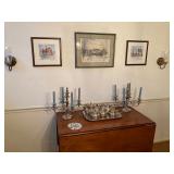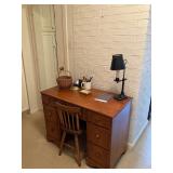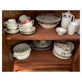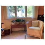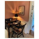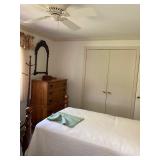 This beautiful townhouse has loads of beautiful furniture. Antique coffee mill, mahogany spinet desk, cherry country bench. Old wooden water pail, early walnut rocker, and an antique rocking chair. Iron floor lamp, old school desk, cherry pembroke table, many accent country style lamps and tables. Collection of pewter and luster ware, Lenox green mark, Interesting bronze lamp. Signed water color oil paintings, Oriental style rugs in many colors. Bohemian glass decanter, OG mirror, cherry and pine console tables. Country drop leaf dining table, many accessories in silver. Newly upholstered side chair, marble side table, school desk seat. Tilt top candle stand, sofa, tea cup collection, Wedgwood pitcher, Shuman teapot, foot stool, African violet plants, a country corner shelf, 6 piece patio set, shepherds hooks. Maple mirror, Mikasa china set, glass bowls, kitchen wares, stainless flatware. Pyrex toaster oven, wine rack, drop leaf oak table and chairs, copper molds. Candle sticks and Candelabras. Adams china, Limoges Cut Glass, Colored Bo bashes, steak knives, covered bullion cups, decos duck, many serving platters and trays. Spoon collection and rack. Large OG framed mirror. Sewing table on legs, English character mugs, Early chippendale wing chair, Early Pembroke table, Bookcases. Blue plates and lamp, Pine dry sink, Pine chest on chest of drawers, a luggage rack, east lake dresser, quilts. 2 cherry Sheraton twin bedroom set, chaise lounge, full size maple bedroom set, desk and file cabinet.