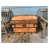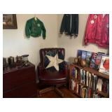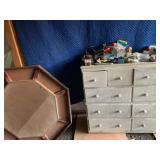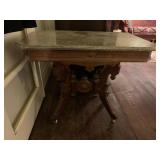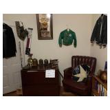 FURNITURE: Victorian settee, futon bed, 2 cute trundle/day beds, drop leaf side tables, bamboo shelf, Victorian Parlor table with white marble top, leather rolling office chairs, folding chairs, a trunk, beautiful antique hutch,