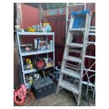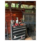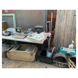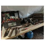 TOOLS: toolbox, chain saw, fireplace tools, antique tools, many hand saws, nuts, bolts, screws, ladders, tile cutting tool, painting supplies, 1930’s washer top,