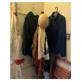 WOMEN’S CLOTHING AND ACCESSORIES: Women’s size XL, scarves, and shoes.